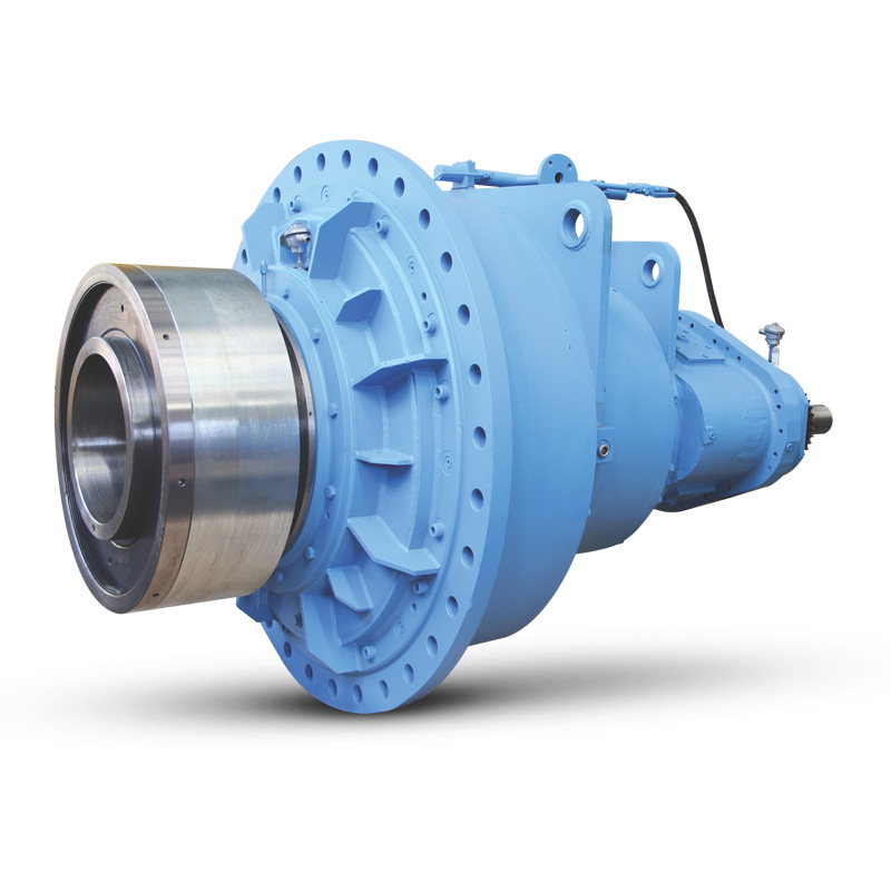 Asgemonteerde Helix, planetaire tandwielkast voor aandrijving van rollenpers.