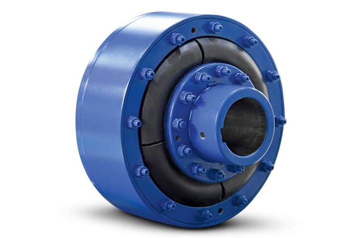 - De gesplitste flexibele rubberen ringen kunnen worden vervangen zonder dat de gekoppelde machines verplaatst hoeven te worden. De flexibele ringen zijn spelingsvrij gemonteerd en geven de koppeling een progressieve torsiestijfheid.